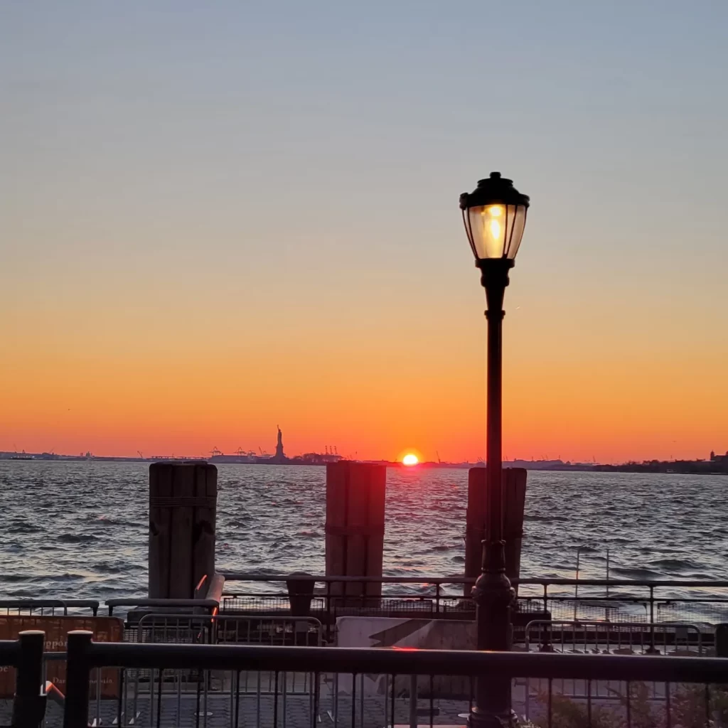 ブルックリンブリッジの後は自由の女神を近くで見るためにバッテリーパークという場所に移動しました。徒歩で20分でした。自由の女神のある島に行かず、公園から女神像見ました。自由の女神を正面から見ることができなったので残念でした。